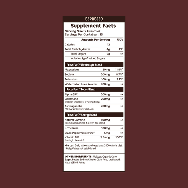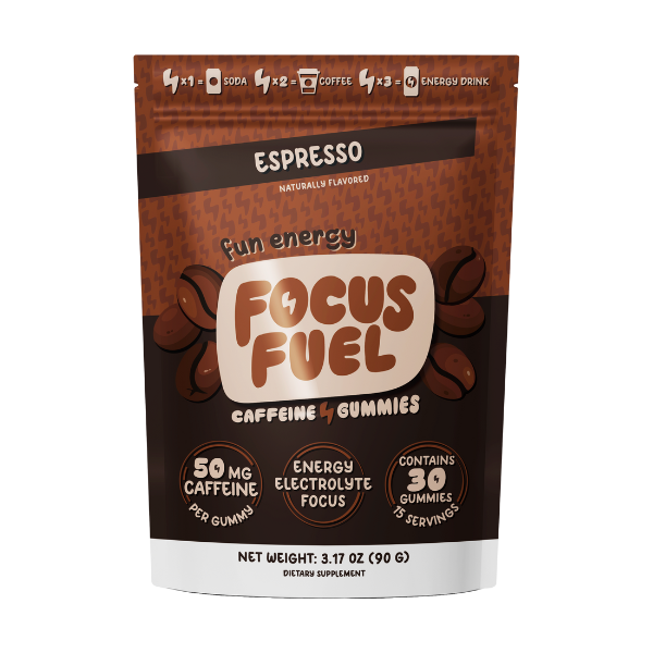 2 FOCUSFUEL GUMMIES <br>= 1 CUP OF COFFEE (100MG CAFFEINE)