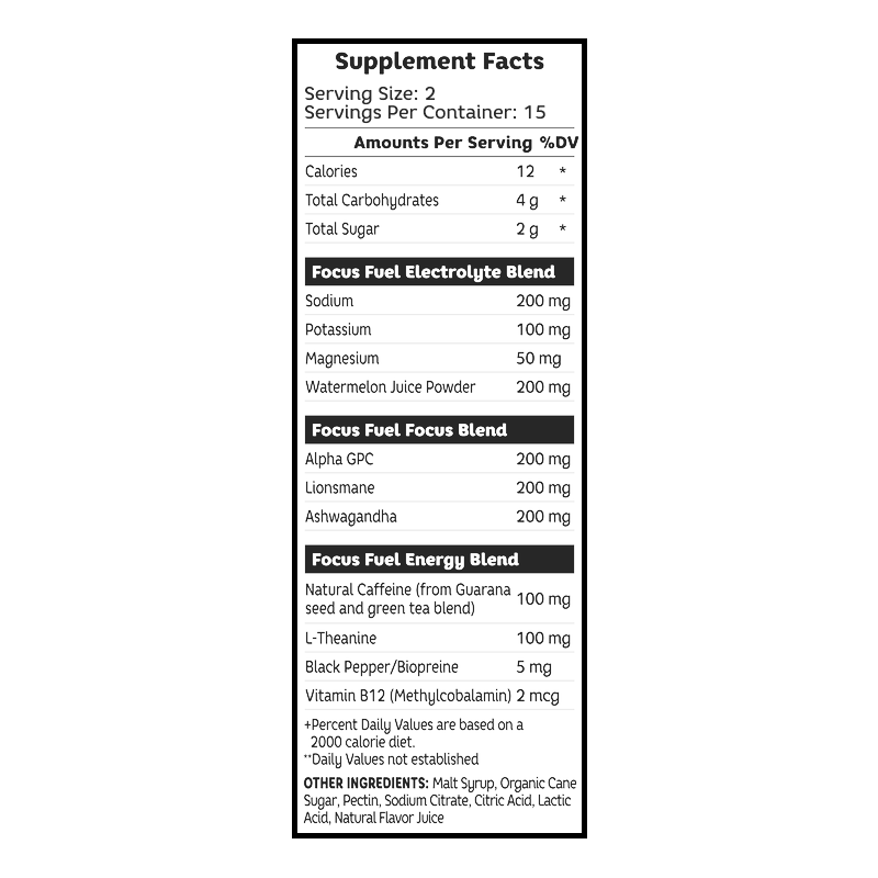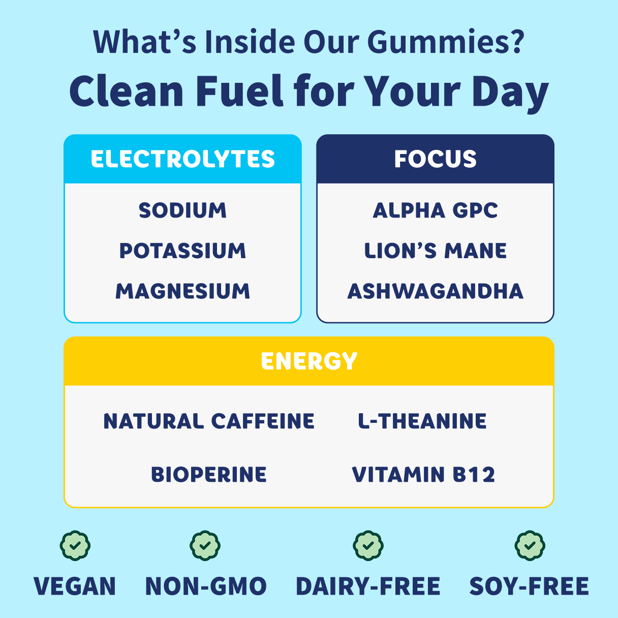 2 FOCUSFUEL GUMMIES <br>= 1 CUP OF COFFEE (100MG CAFFEINE)
