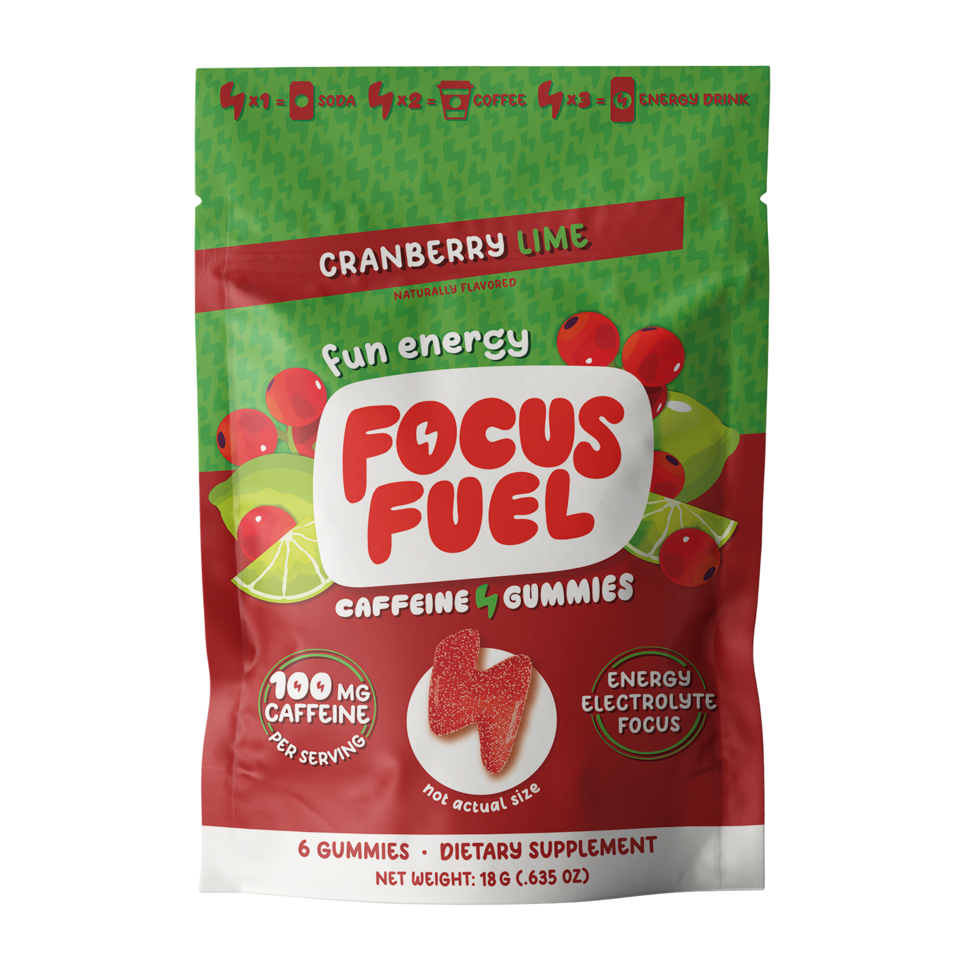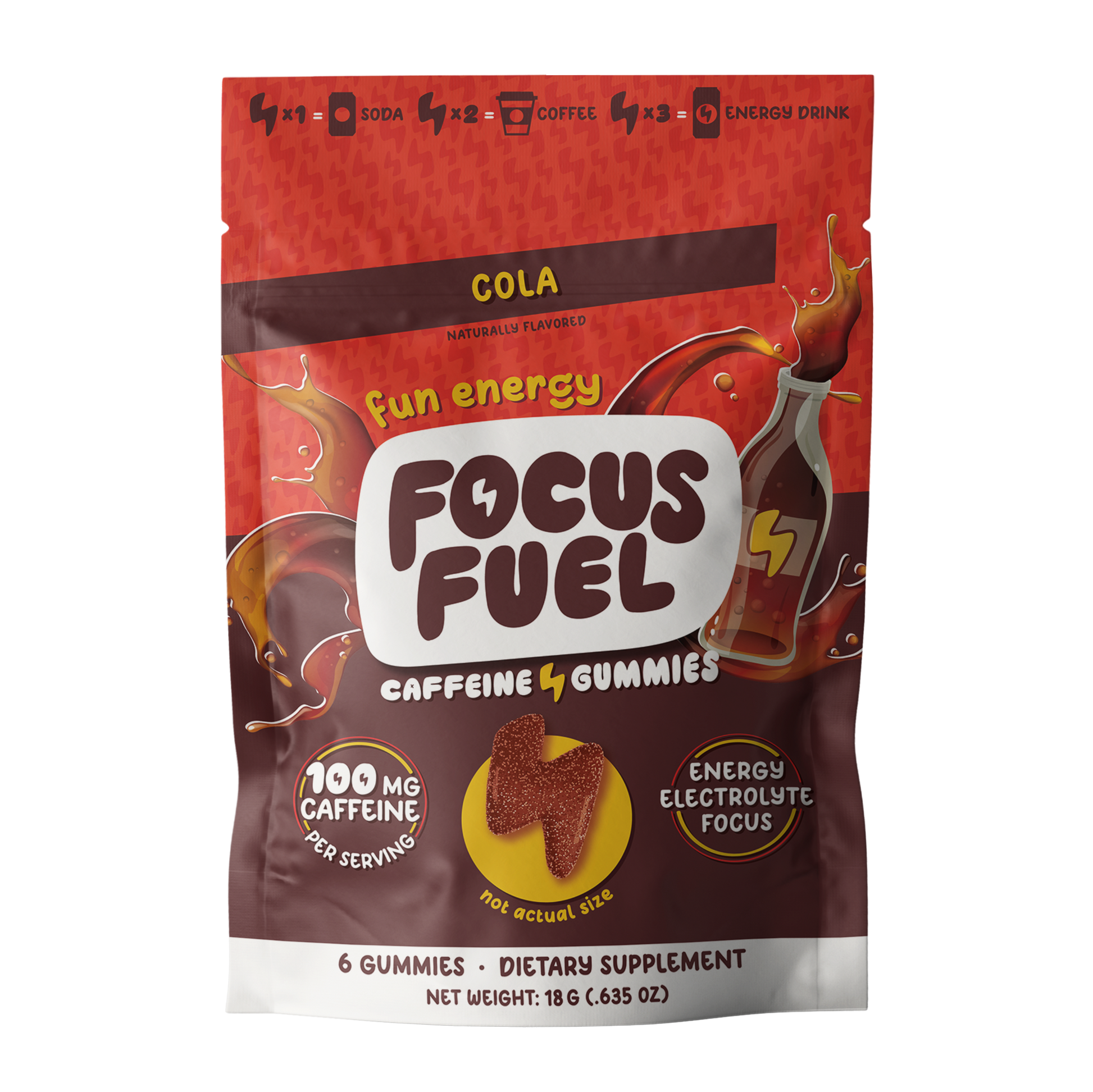 Each FocusFuel Gummy contains 50 milligrams of natural caffeine and each serving (2 Gummies) contains 100 milligrams of natural caffeine, offering a precisely measured dose to keep you alert without the need for coffee or energy drinks.